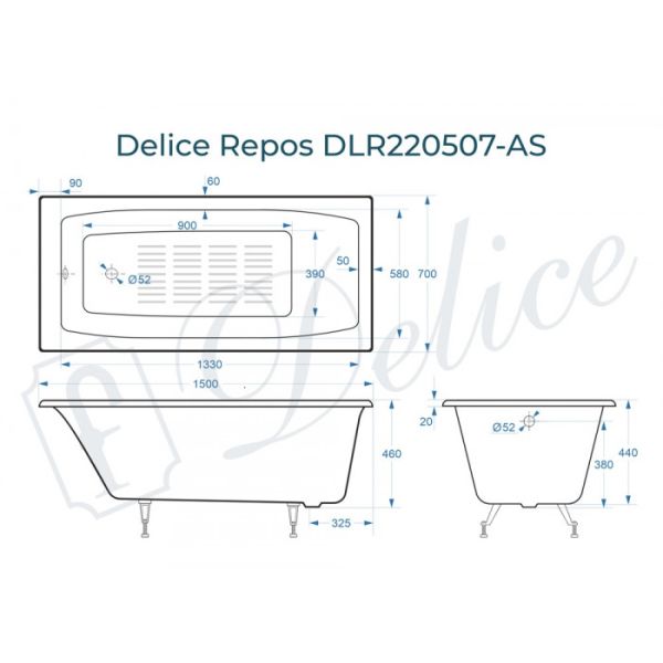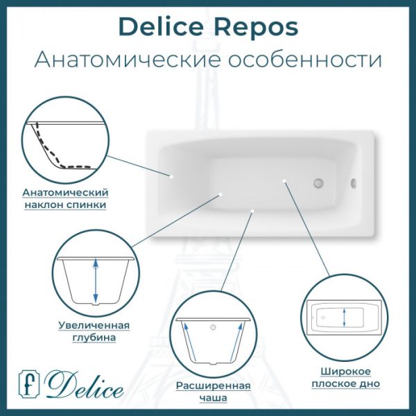 Ванна чугунная Delice Repos DLR220507-AS 150x70 купить