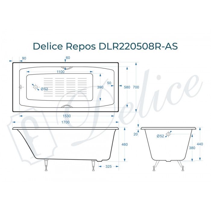 Ванна чугунная Delice Repos DLR220508R-AS 170x70 с ручками купить