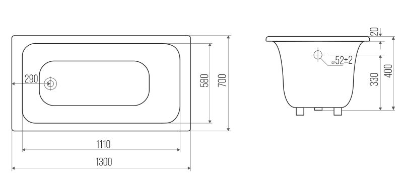 Ванна покрыта 3 слоями эмали из титановой пудры, имеет абсолютно ровную поверхность