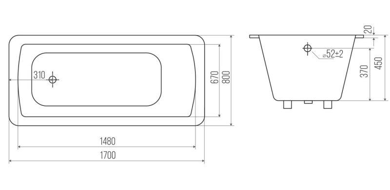 Стандартные размеры, см:170x80