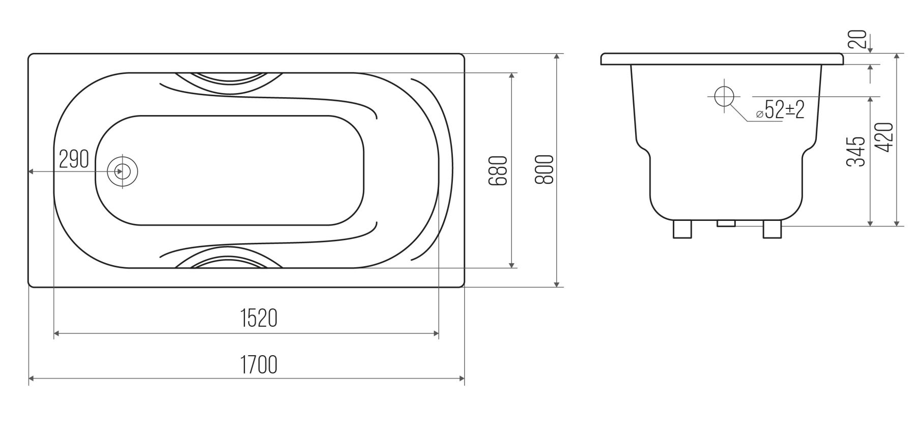 Стандартные размеры, см:170x80