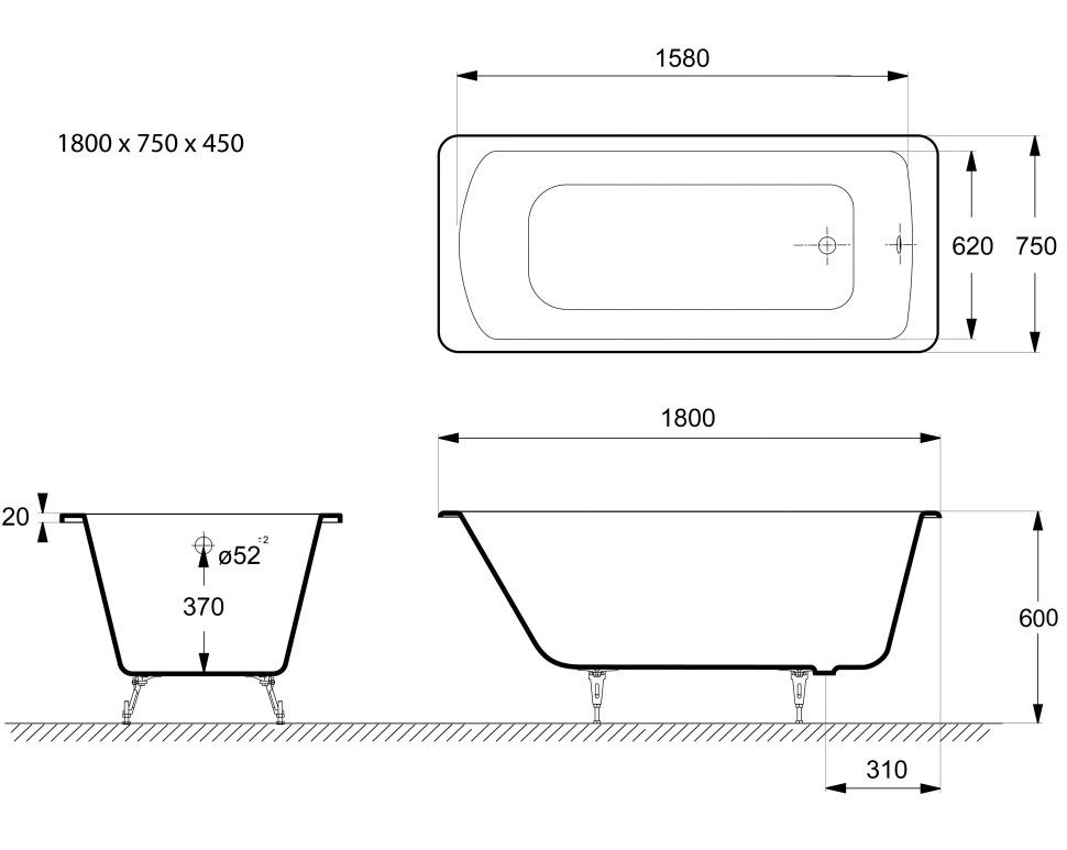 Общие характеристикиРазмер 180х75 Длина 180 см Ширина 75 см Глубина 45 см Высота на ножках 60 см Полезный объём 282 л Вес 137 кг Бренд Vinsent Veron 7 слёв титановой эмали класса 1А Цвет эмали белый Без антискользящего покрытия Диаметр слива Ø52 Расположение перелива стандартное
