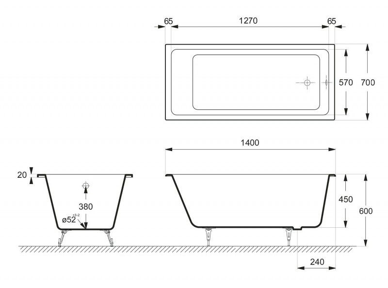 Общие характеристикиРазмер 140х70 Длина 140 см Ширина 70 см Глубина 45 см Высота на ножках 60 см Полезный объём 213 л Вес 110 кг Бренд Vinsent Veron 7 слёв титановой эмали класса 1А Цвет эмали белый без антискользящего покрытия Диаметр слива Ø52 Расположение перелива стандартное