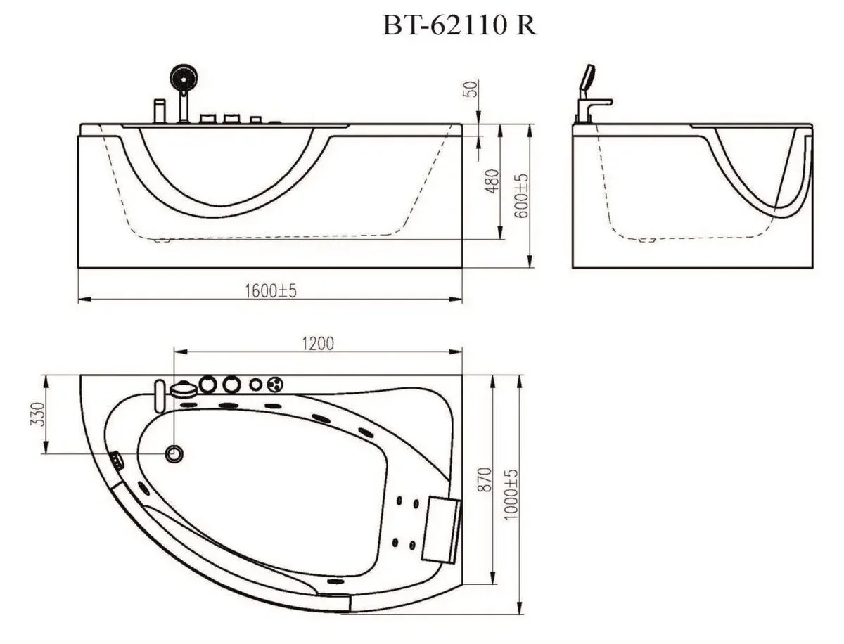 Ванна гидромассажная акриловая Orans BT-62110R 62110R 160x100 см купить
