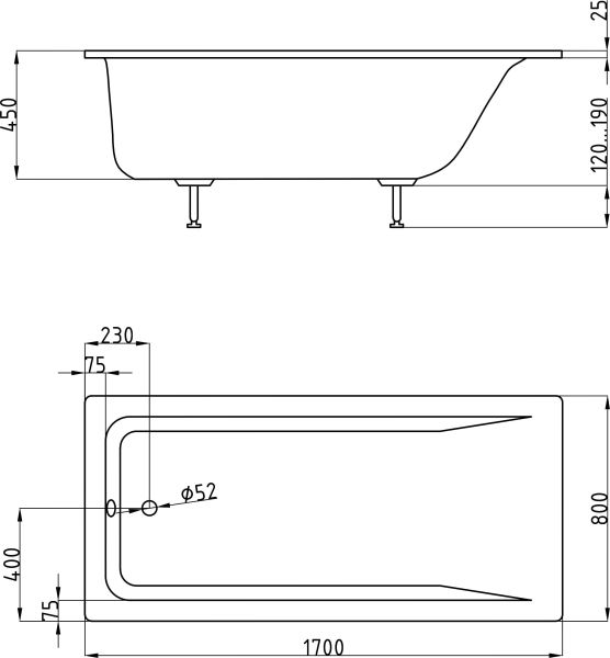 Ванна из искусственного камня AquaStone Армада 1700x80см белый купить