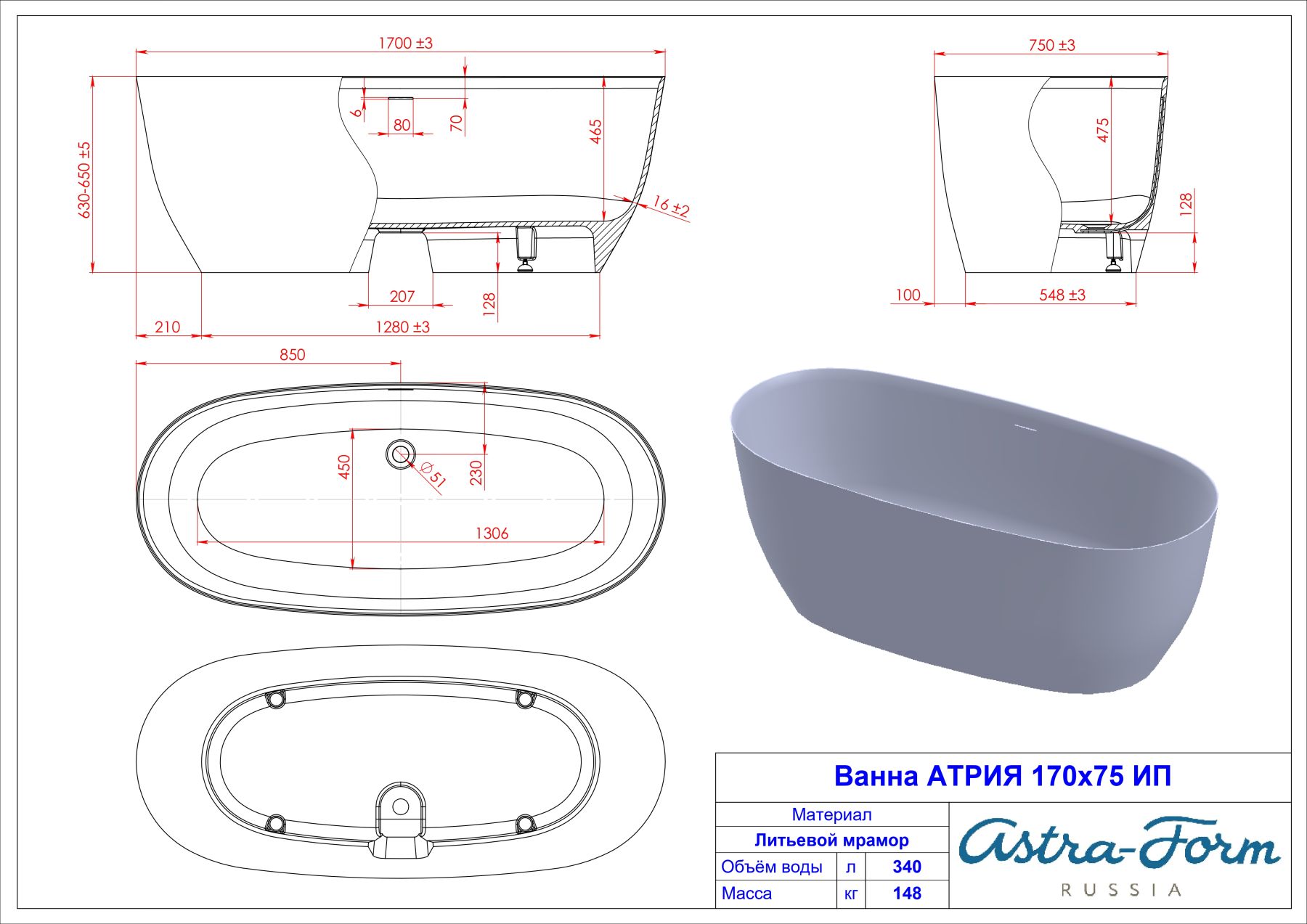 Ванна из искусственного камня Astra-Form Атрия 01010044 170x75 см с интегрированным переливом белый глянец Ванна из искусственного камня Astra-Form Атрия 01010044 170x75 см с интегрированным переливом белый глянец Казань 145000.00 {old_price} Astra-Form