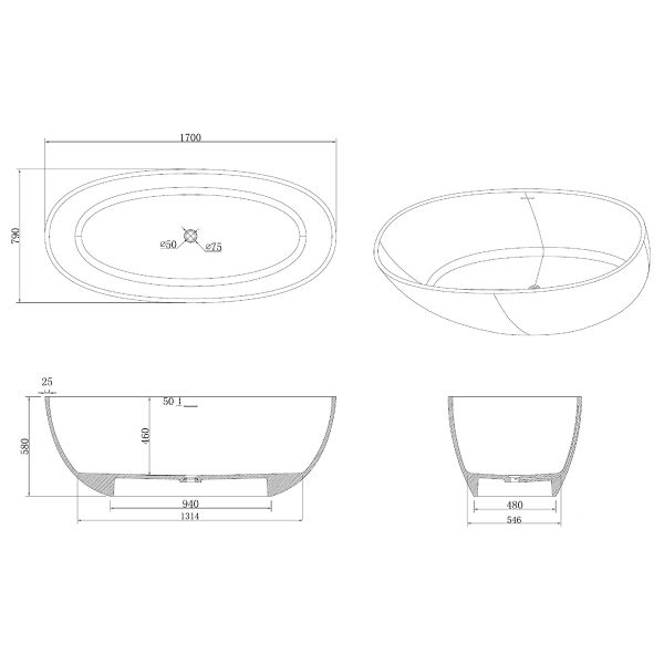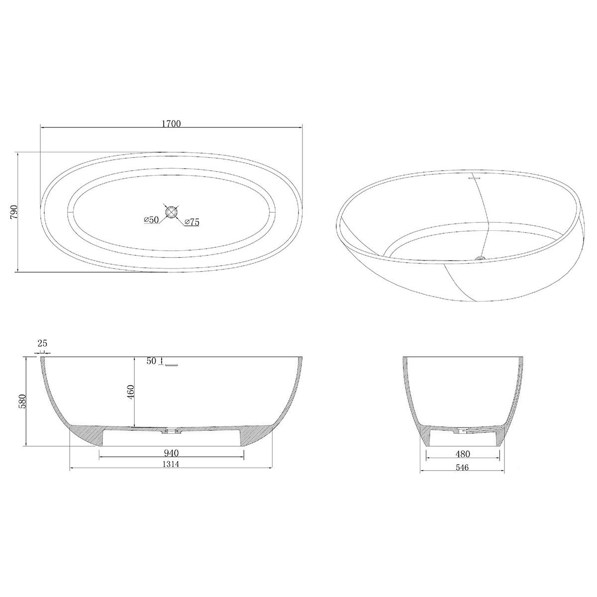 Ванна из искусственного камня Azario CHARTERS CHA17079S свободностоящая 1700х790х580 купить