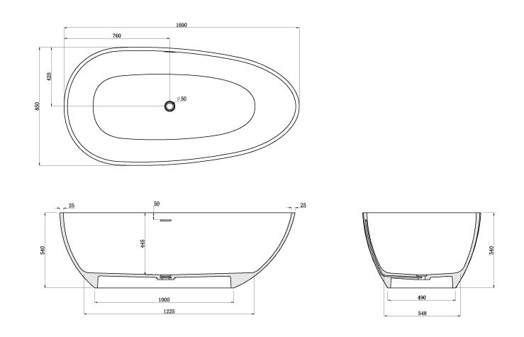 Ванна из искусственного камня Azario CLOVIS CLO17085S 1690х850х540 свободностоящая купить