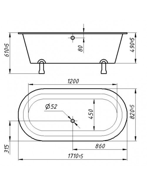 Ванна из искусственного камня Фэма Стиль Феррара на опорах RAL 171x82 см купить