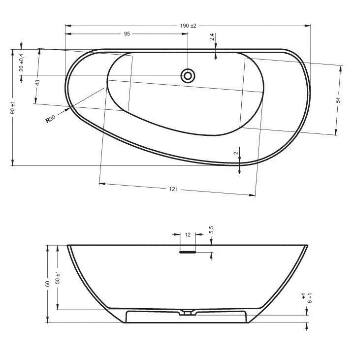 Твёрдая поверхность ванны устойчива к механическим повреждениям, гигиенична и химически нейтральна.