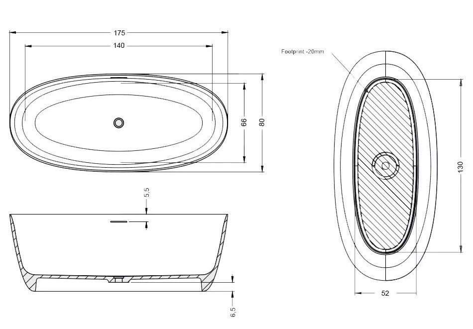 Ванна RIHO OVAL 175x80 см - это результат инновационного подхода дизайнеров к классической форме ванны. Отдельно стоящая, овальная, равномерно сужается к низу, с закругленным основанием у самого пола. Обратите внимание на детали. Оригинальный обвод, который расширяется по длинным сторонам ванны и максимально сужается у ног и под головой. И конечно, характерные детали для ванн Solid Surface RIHO: узкий щелевой перелив и круглая крышка слива белого матового цвета.