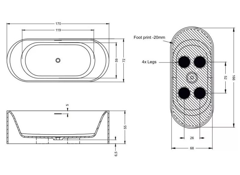 Ванна Solid Surface RIHO Valor 170х72 - композитная ванна, изготовленная из однородной каменной массы - каменная на ощупь, тёплая внутри. Это имитация мрамора: белый матовый цвет ванны при наполнении водой заиграет оригинальной текстурой камня.Твёрдая поверхность ванны устойчива к механическим повреждениям, гигиенична и химически нейтральна.