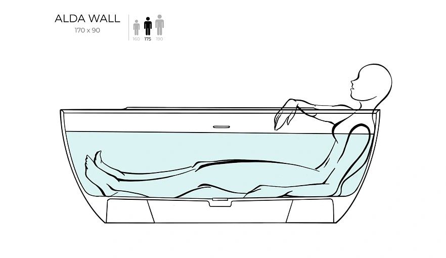 Когда хочется изысканной простоты, простора и безграничного комфорта, внимание невольно переключается на пристенную ванну ALDA WALL 170. Выполненная по технологии минерального литья, она воплотила в себе главные принципы минималистичного дизайна, построенного на контрасте прямых и эллиптических линий.