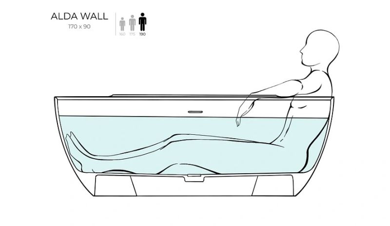 Когда хочется изысканной простоты, простора и безграничного комфорта, внимание невольно переключается на пристенную ванну ALDA WALL 170. Выполненная по технологии минерального литья, она воплотила в себе главные принципы минималистичного дизайна, построенного на контрасте прямых и эллиптических линий.