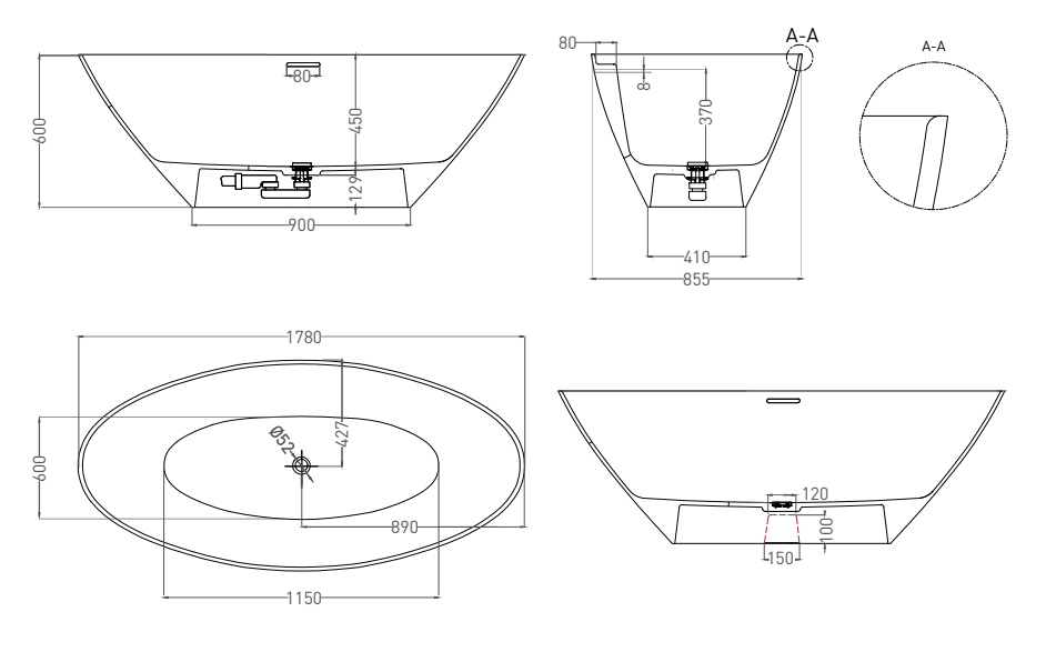 Ванна из искусственного камня Salini Diva S-Sense 102211GRF 178x85см RAL полностью купить