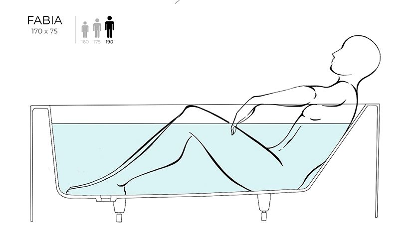 Овальная чаша и строгая геометрия экранов превращают модель FABIA в скульптуру, скромно занимающую место у стены ванной комнаты. Она притягивает взгляды. Внутри визуально цельного объёма скрывается купель с пологой спинкой, обещающей приватность и комфорт.
