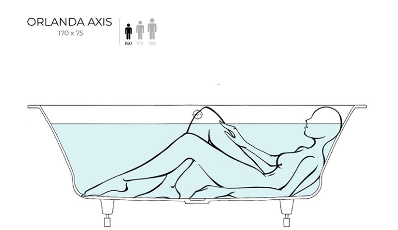 ORLANDA AXIS 170 — самая универсальная ванна Salini из литого камня.Она предназначена как для полного или частичного встраивания, так и для пристенной или угловой установки. Ванна характеризуется одинаковым уклоном бортов и расположенными посередине сливом-переливом и донным клапаном. Название модели Axis («Ось) отражает характерную симметрию ванны во фронтальной проекции.По индивидуальному запросу ванны из материала S-Sense могут быть оснащены любым количеством декоративных экранов для установки у стены или в углу. Экраны, изготовленные из того же материла, что и ванна, придают изделию законченный вид без видимых стыков и соединений.