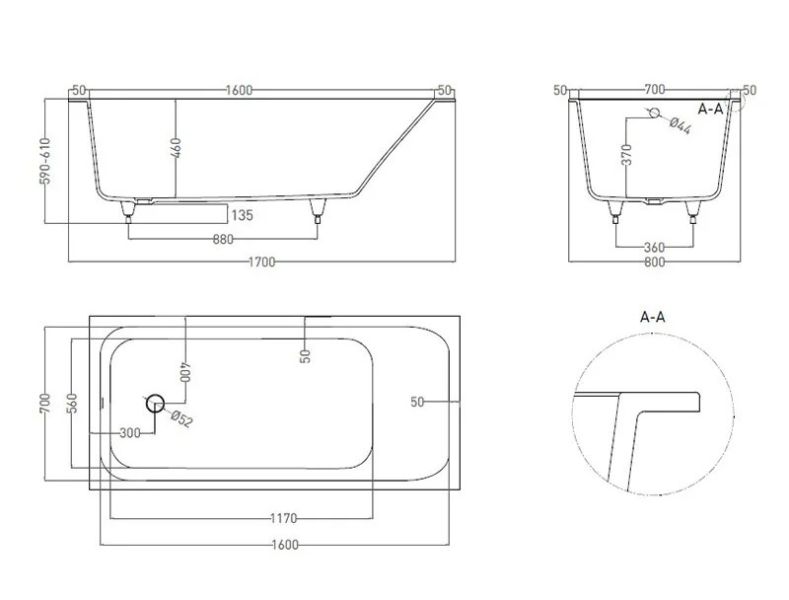 - Регулируемые ножки (ванна с экранами по высоте НЕ регулируется)