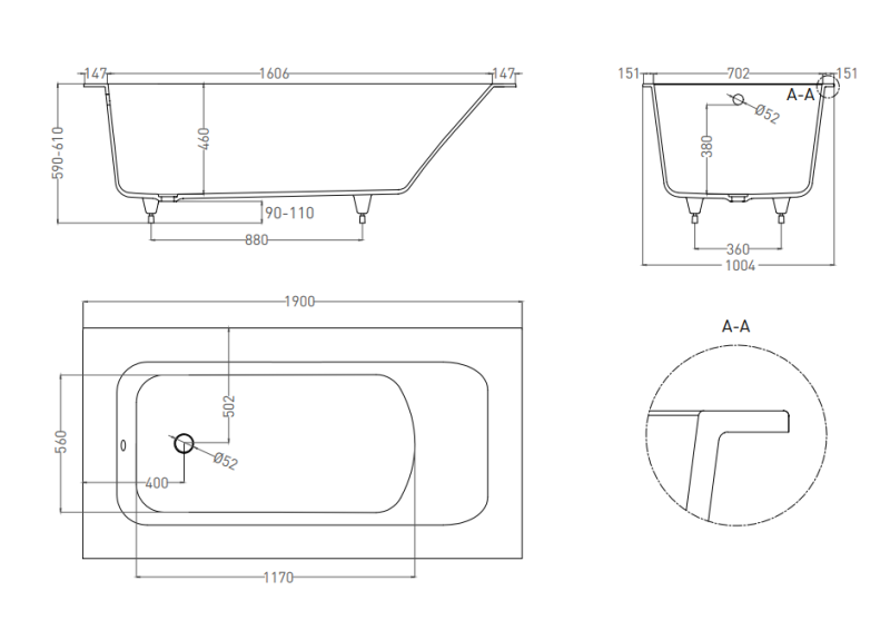 - Регулируемые ножки (ванна с экранами по высоте НЕ регулируется)