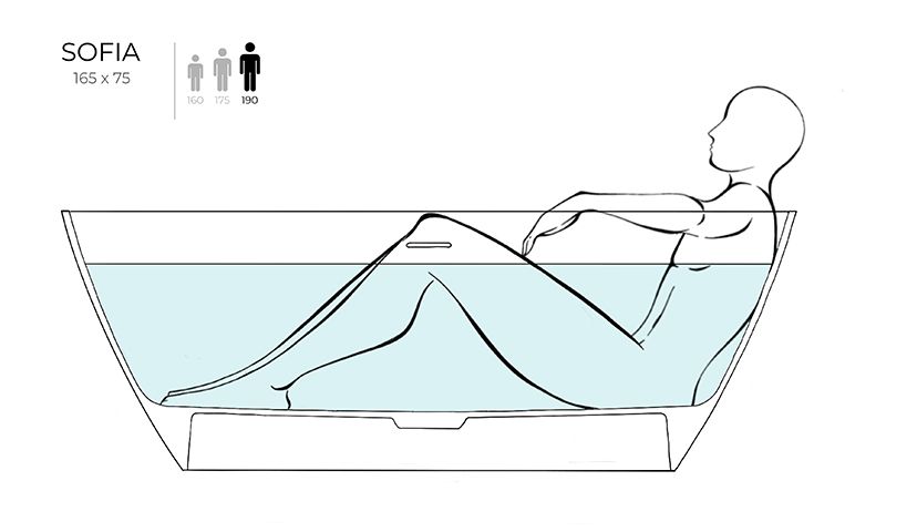 Ванна SOFIA хорошо смотрится как у стены, так и в центре комнаты — особенно в сочетании с удобной раковиной современного силуэта из этой же серии. Преимущества
