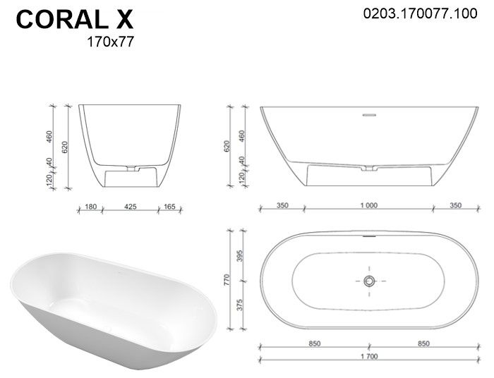 Ванна из искусственного камня Whitecross Coral X 0203.170077.100 170x77см белый глянец Ванна из искусственного камня Whitecross Coral X 0203.170077.100 170x77см белый глянец Казань 268380.00 {old_price} Whitecross