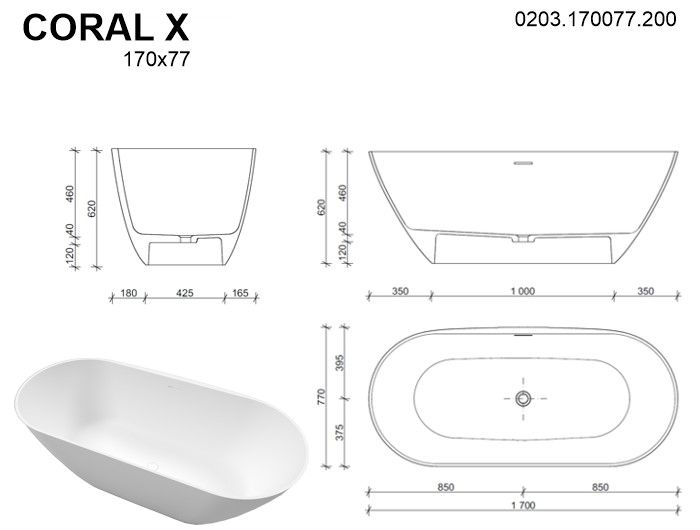 Ванна из искусственного камня Whitecross Coral X 0203.170077.200 170x77см белый матовый купить