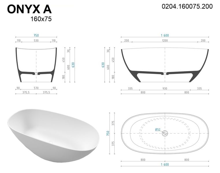 Для создания ванны ONYX A используются материалы премиум класса, качество которых соответствует высочайшим стандартам.