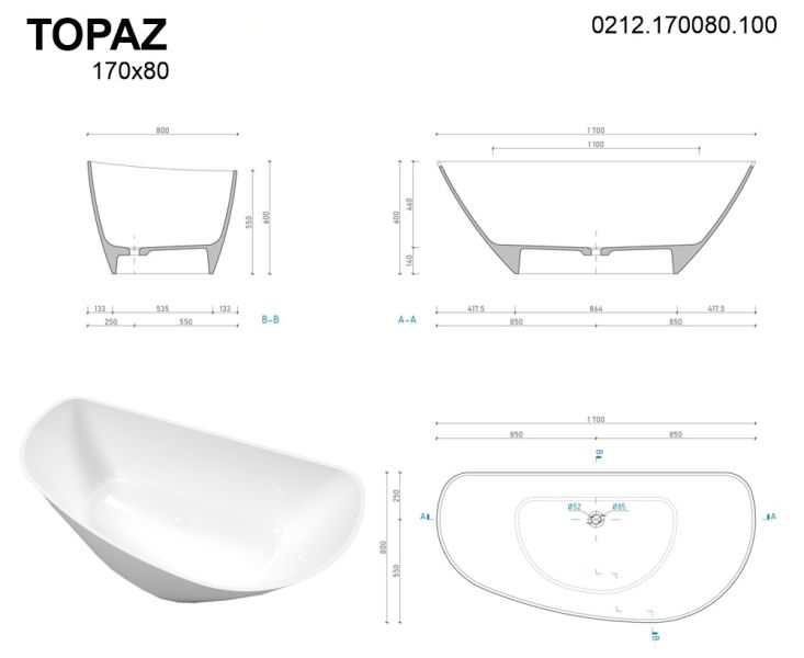 Ванна из искусственного камня Whitecross Topaz 0212.170080.100 170x80см белый глянец Ванна из искусственного камня Whitecross Topaz 0212.170080.100 170x80см белый глянец Казань 218715.00 {old_price} Whitecross