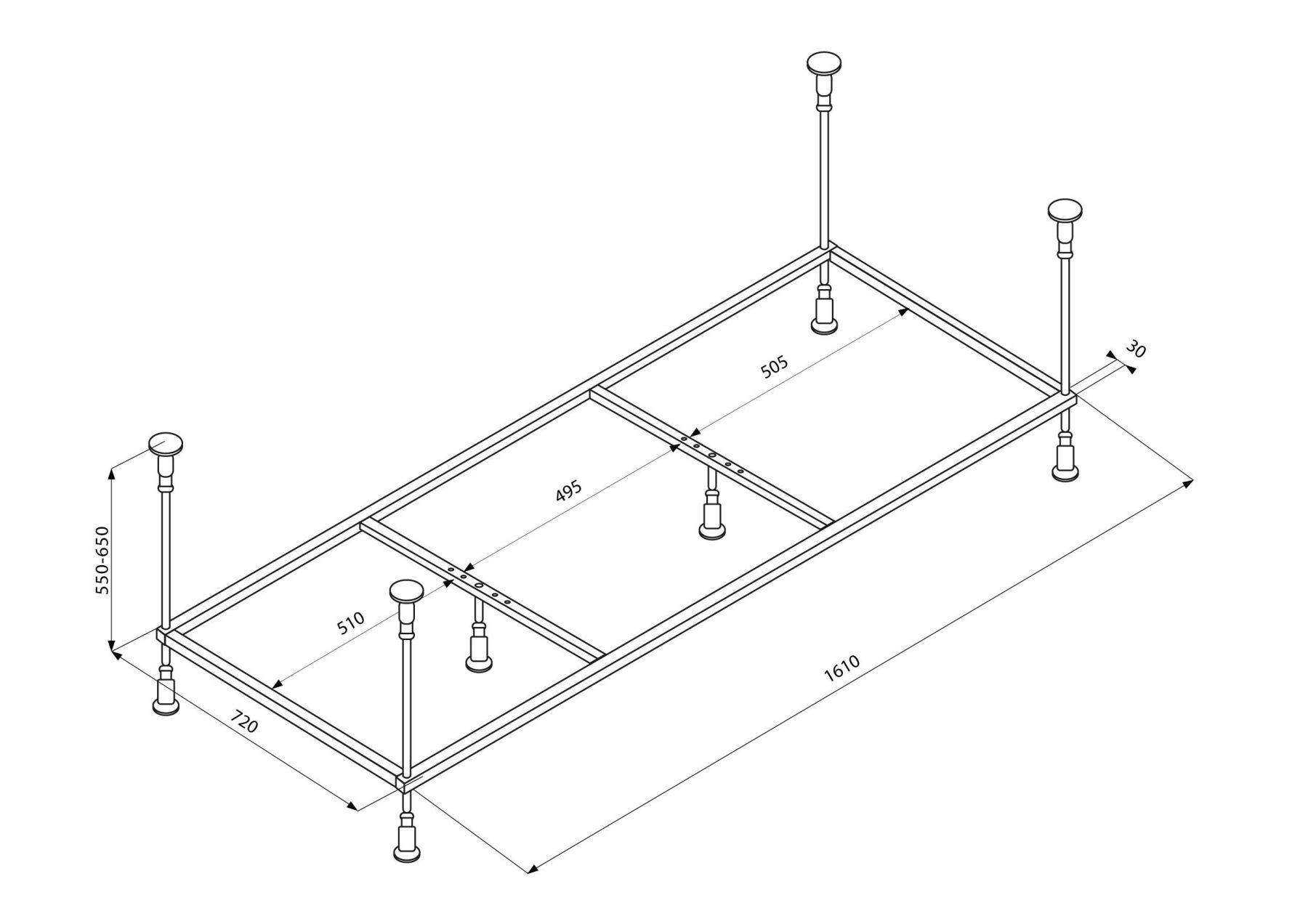 Прочный каркас для акриловой ванны Bettoserb Надежный усиленный сварной каркас из стальной трубы квадратного сечения обеспечивает прочное и устойчивое основание для вашей ванны. Покрытие порошковой антикоррозийной краской гарантирует долговечность и защиту от ржавчины. Преимущества каркаса: ? Высокая грузоподъемность – выдерживает до 400 кг, обеспечивая безопасность и надежность.? Усиленные стойки – прочно поддерживают бортики ванны, предотвращая деформацию.? Цельносварная конструкция – в отличие от болтовых соединений, обеспечивает 100% устойчивость без люфтов и расшатывания.? Регулируемые опоры – позволяют легко выставить каркас по уровню и подобрать нужную высоту ванны. Идеальное решение для монтажа акриловой ванны Bettoserb – прочность, устойчивость и простота установки!