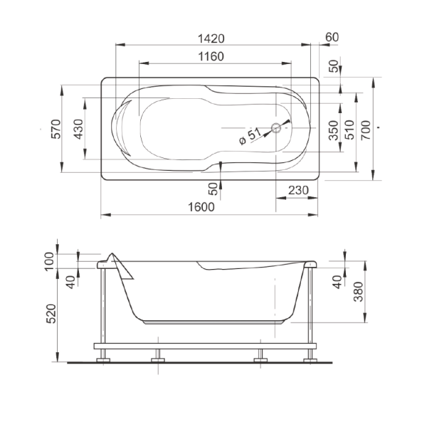 Veedi Ванна акриловая Ina 160х70 с каркасом купить