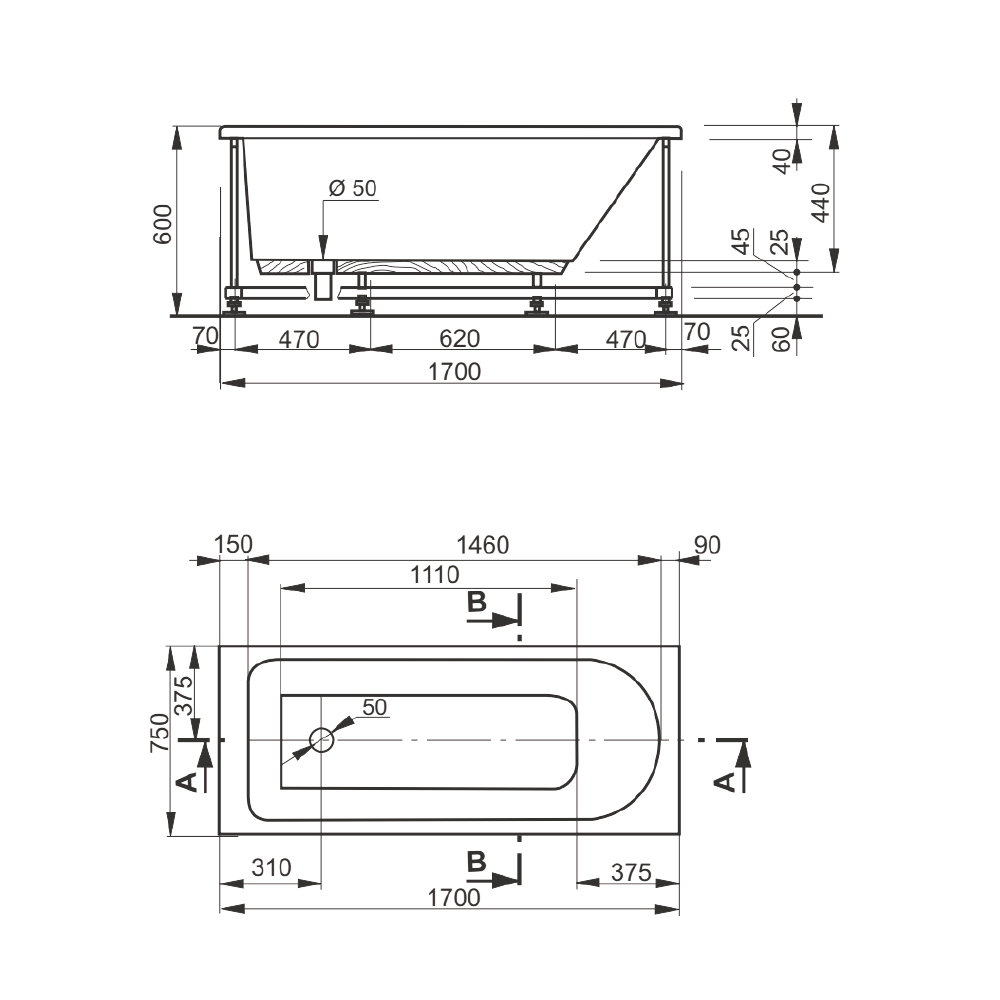 Veedi Ванна акриловая Mira 170х75 с каркасом купить