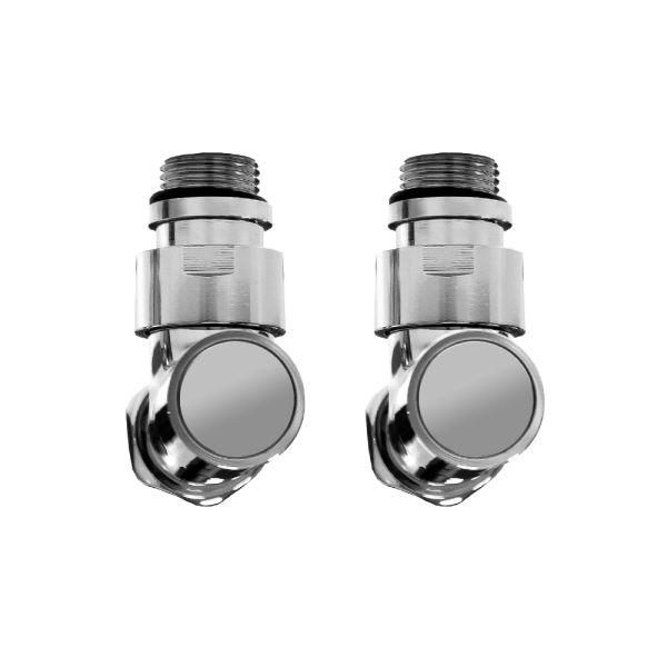 Вентили запорные угловые (запорно-регулировочная арматура) применяются для регулирования количества подачи горячей воды в водяной полотенцесушитель типа лесенка при обязательном наличии байпаса.Регулировка подачи воды в полотенцесушитель приводит к увеличению или уменьшению температуры нагрева полотенцесушителя либо к полному перекрытию поступления теплоносителя (воды) в полотенцесушитель.Наличие кранов значительно повышает функциональность полотенцесушителя типа лесенка — регулируется температура полотенцесушителя, перекрывается подача воды, проходящей через полотенцесушитель, без необходимости отключения стояка, что особенно актуально при демонтаже полотенцесушителя.Краны устанавливаются на места соединительных угловых блоков полотенцесушителя, при горизонтальном подключении – в одной плоскости, при диагональном подключении – снизу и сверху.Подключение к полотенцесушителю осуществляется при помощи наружной резьбы 1/2'', к системе отопления при помощи накидной гайки с внутренней резьбой 3/4''.Краны не только влияют на функциональность полотенцесушителя, но и придают прибору более завершенный эстетичный внешний вид.Комплектация вентилей: