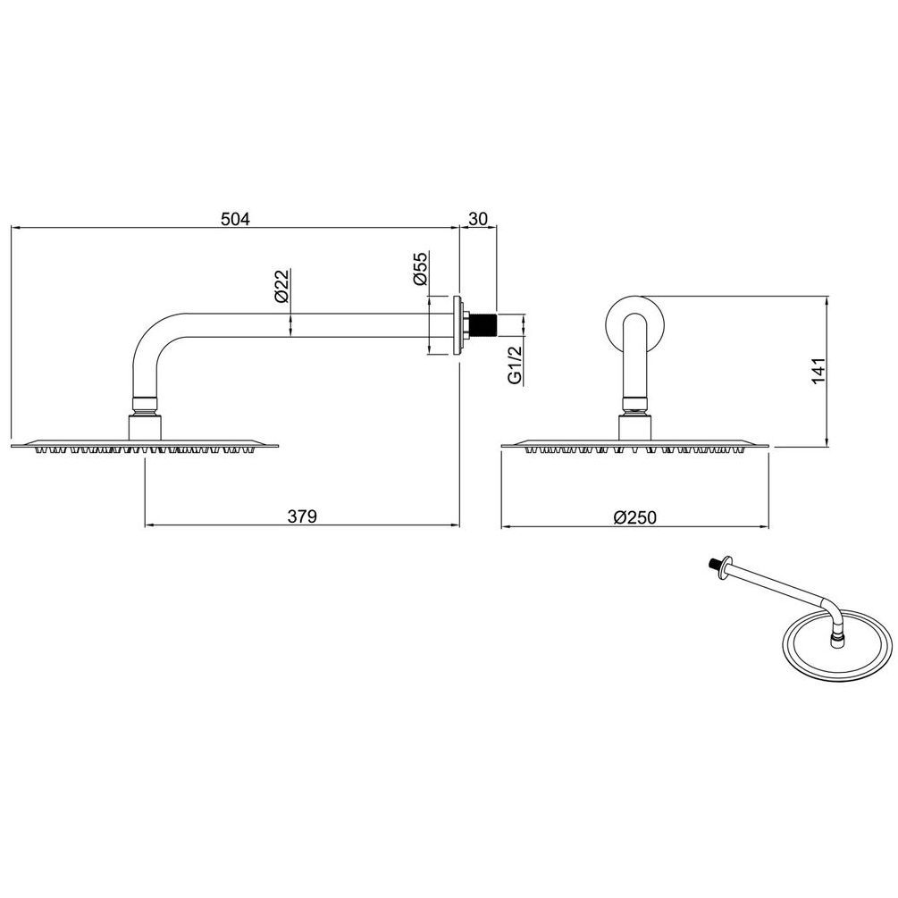 Размер верхнего душа, см:25