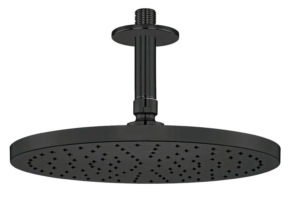 Верхний душ E.C.A предназначен для использования в ванных комнатах. Модель оснащена душевой головкой круглой формы. Изделие выполнено из латуни, которая отличается прочностью, долговечностью и устойчивостью к перепадам температуры.Черный круглый верхний душ 25 см, с потолочным держателем.