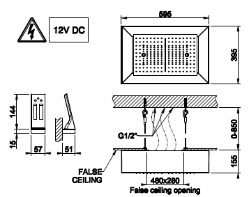 Встраиваемая в потолок душевая система 300x500 с функциями ливень/водопад/распыление и хромотерапия.