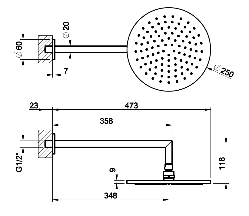Размер верхнего душа, см:25