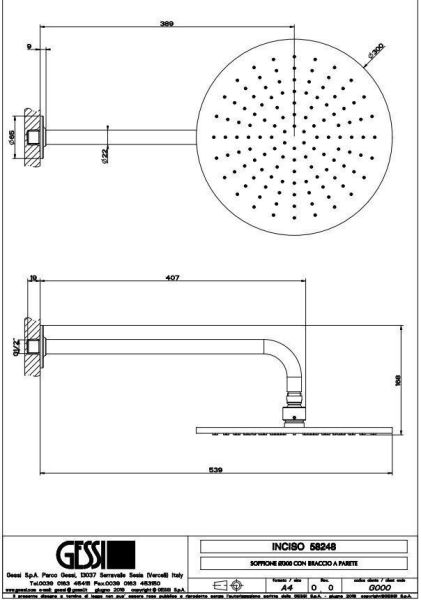 Душ Gessi Inciso является частью коллекции, которая известна своей высокой эстетической ценностью и использованием передовых технологий. Этот верхний душ идеально подходит для создания роскошной и современной атмосферы в ванной комнате.