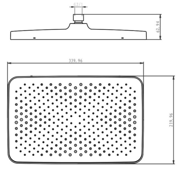 Тропический (верхний) душ Raglo R451.52.06.Цвет черный.Размер 340*220мм.Материал пластик.Стандарт подводки 1/2".