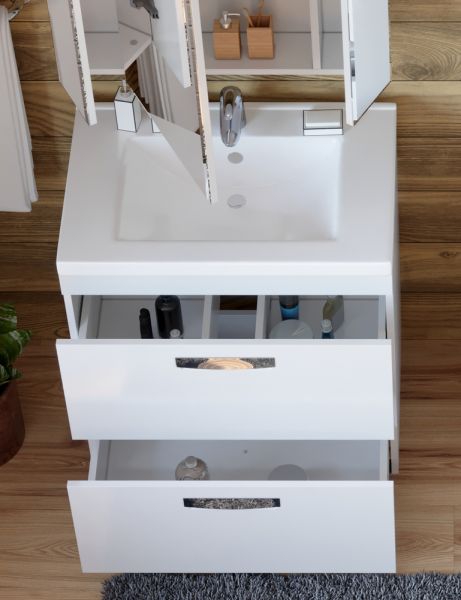 2 ящика; ручка врезная металлическая хромированная, опоры квадратные регулируемые.