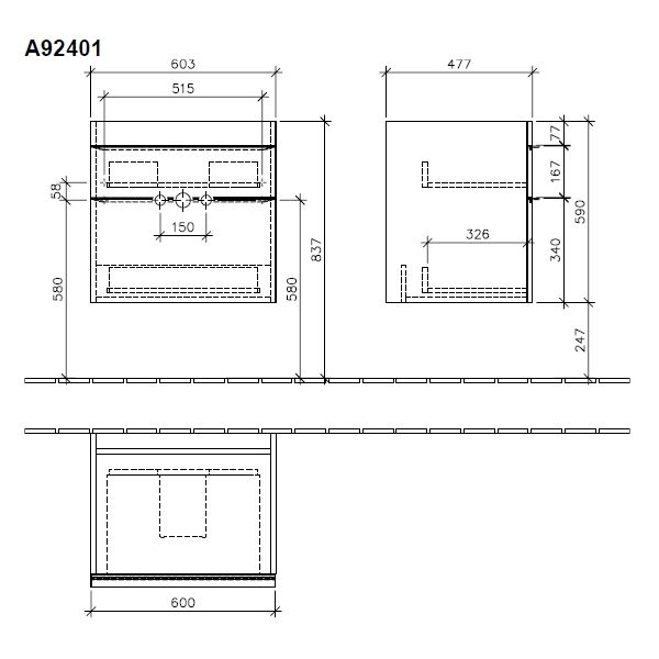 Villeroy Boch A924 01FP VENTICELLO Тумба под раковину 603x590x502 мм, для раковин Venticello 4124 65/66/67, крепежный комплект, цвет Glossy Grey купить