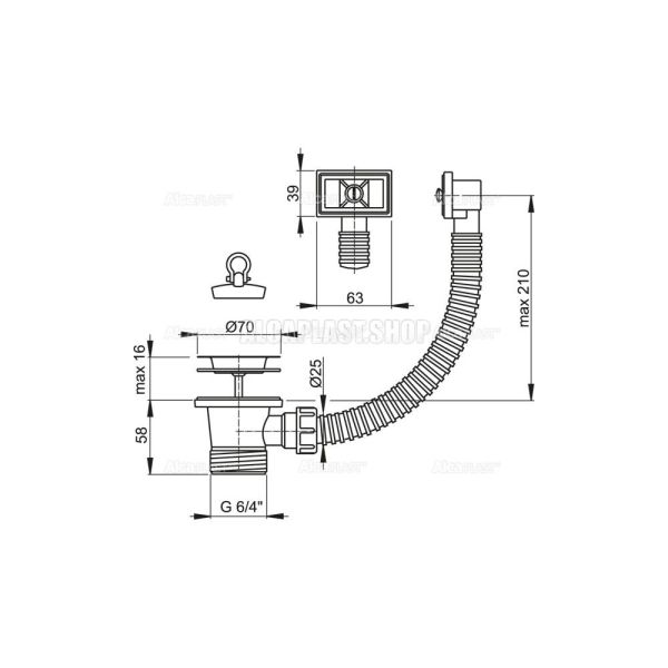 Водослив сифона для мойки AlcaPlast 6/4" с нержавеющей рeшeткой ?70 и гофропереливом A331 купить