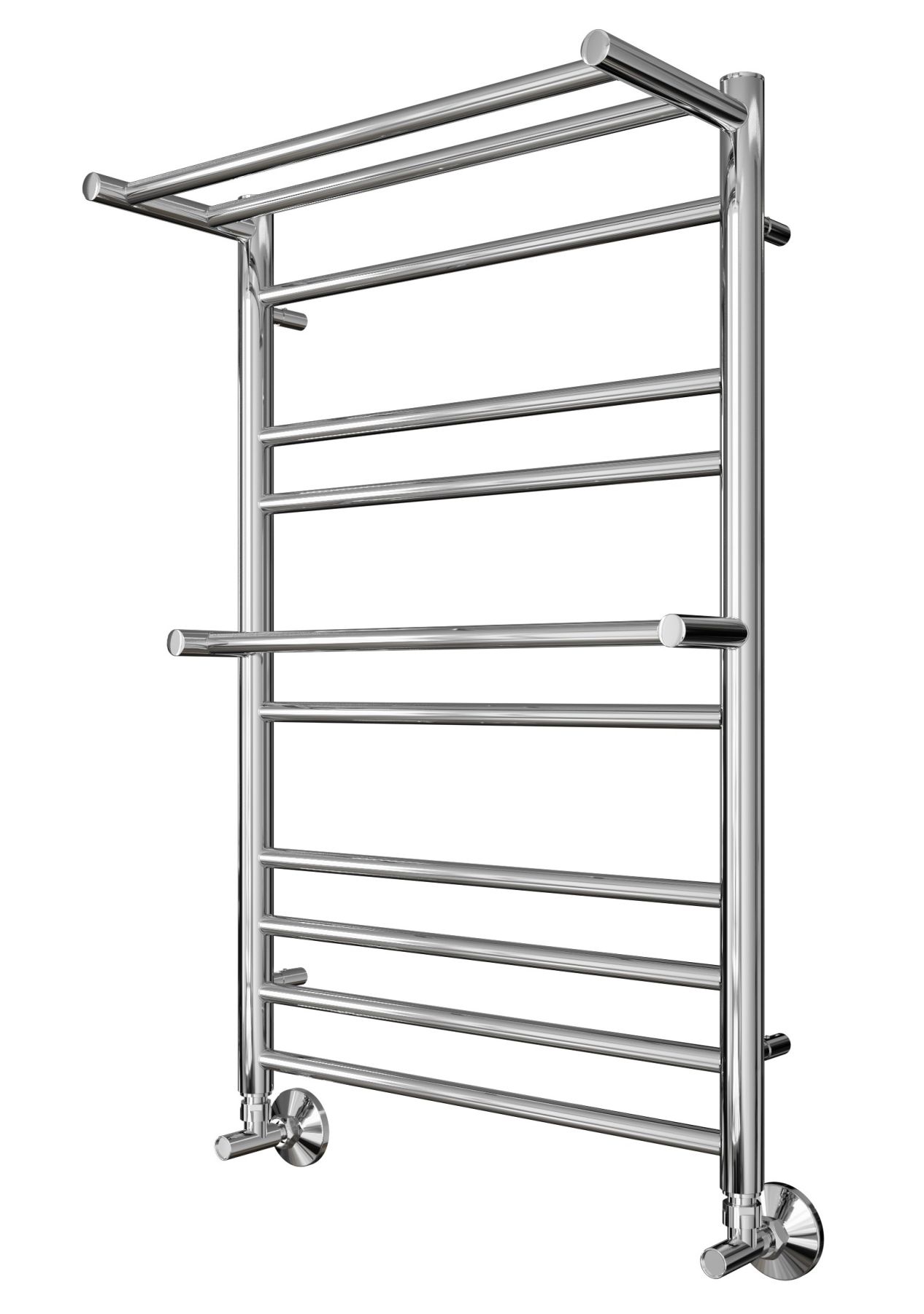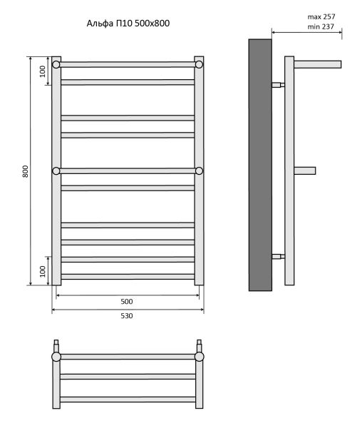 Полотенцесушитель водяной Aquatek (Акватек) Альфа П10 500х800 мм, с полкой, подключение нижнее/диагональное, сверхпрочная пищевая нержавеющая сталь AISI 304L, гарантия 10 летХарактеристики:32х18,без фитинговКомплектация:полотенцесушитель;