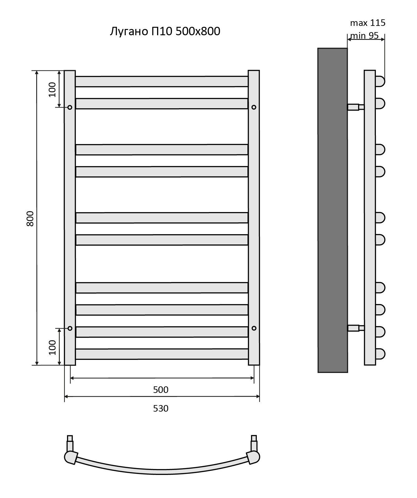 Водяной полотенцесушитель Aquatek Лугано AQ DOC1080BL П10 50x80см чёрный муар купить