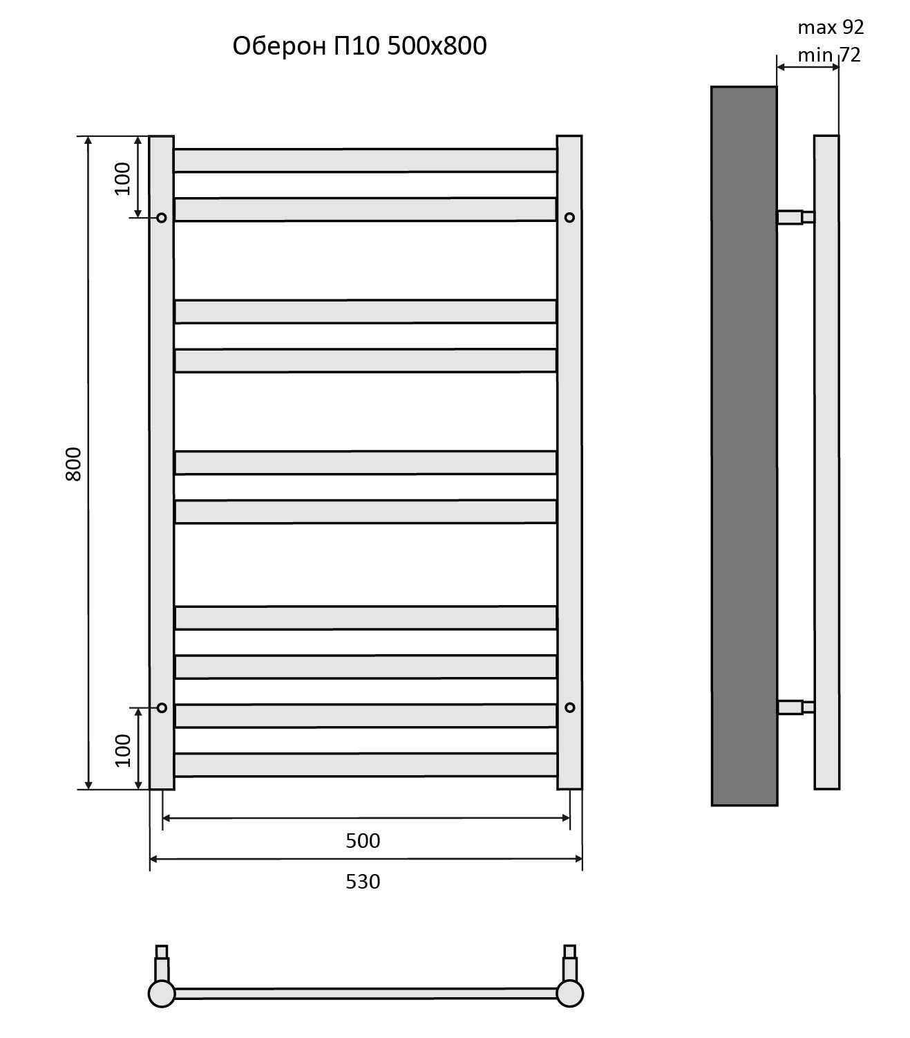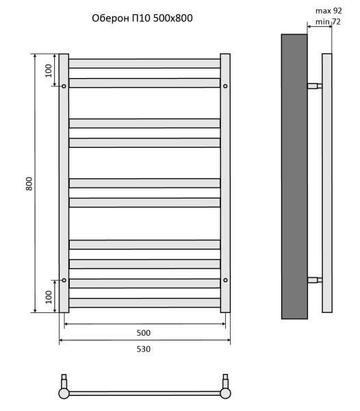 Полотенцесушитель водяной Aquatek (Акватек) Оберон П10 500х800 мм, подключение нижнее/диагональное, сверхпрочная пищевая нержавеющая сталь AISI 304L, гарантия 10 летХарактеристики:32х29,без фитинговКомплектация:полотенцесушитель;