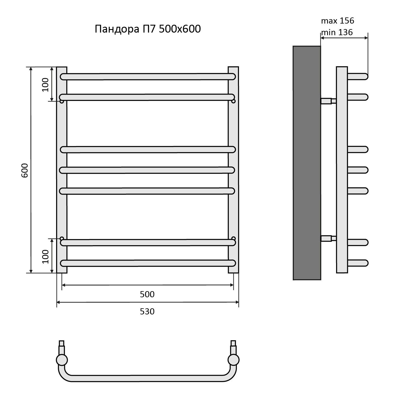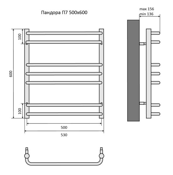 Полотенцесушитель водяной Aquatek (Акватек) Пандора П7 500х600 мм, подключение нижнее/диагональное, сверхпрочная пищевая нержавеющая сталь AISI 304L, гарантия 10 летХарактеристики: 32х18, без фитинговКомплектация:полотенцесушитель;