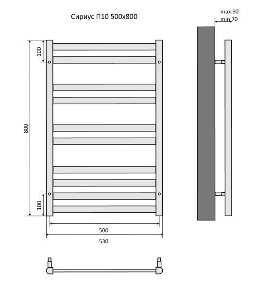 Полотенцесушитель водяной Aquatek (Акватек) Сириус П10 500х800 мм, черный муар, подключение нижнее/диагональное, сверхпрочная пищевая нержавеющая сталь AISI 304L, гарантия 10 летХарактеристики:Dх30х10,без фитинговКомплектация:полотенцесушитель;