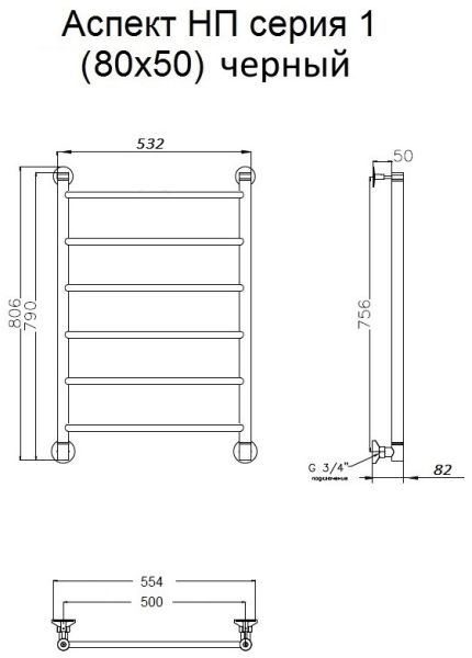 Водяной полотенцесушитель Тругор Аспект НП 1 80x50см чёрный Аспект1/НП8050черный купить