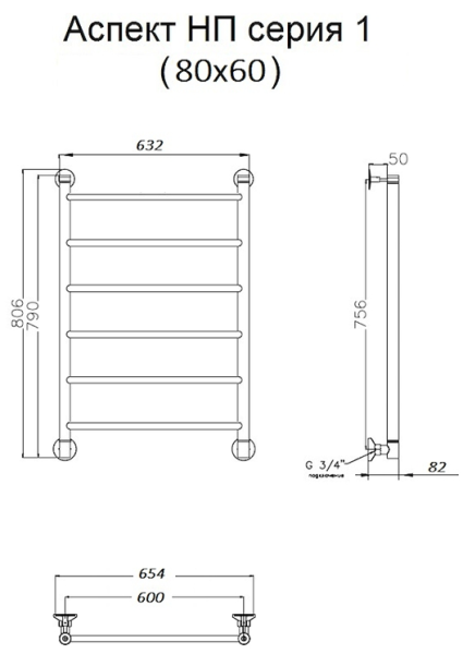 Водяной полотенцесушитель Тругор Аспект НП 1 80x60см хром Аспект1/нп8060 купить