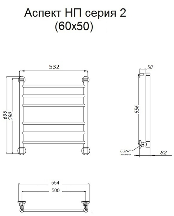 Водяной полотенцесушитель Тругор Аспект НП 2 60x50см хром Аспект2/нп6050 купить