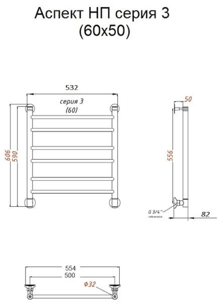 Водяной полотенцесушитель Тругор Аспект НП 3 60x50см хром Аспект3/нп6050 купить